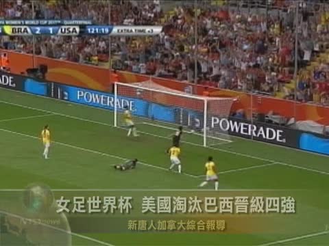 【新唐人2011年7月12日訊】在10日晚結束的2011年女足世界盃1/4決賽最後一場比賽中,老牌勁旅美國隊在加時賽補時階段,神奇扳平比分,又在隨後的點球大戰中五罰全中,淘汰巴西隊晉級四強。