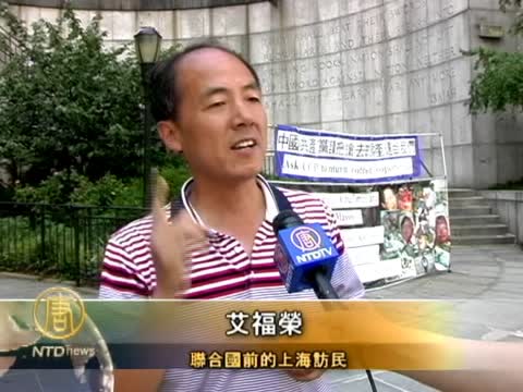 【新唐人2011年7月12日訊】在聯合國總部前面揭露中共當局暴力強拆家園的上海訪民,在得知“江澤民死亡”的消息後表示歡心鼓舞,要放鞭炮慶祝驅邪,並強調國內外將會展開對江的清算。
