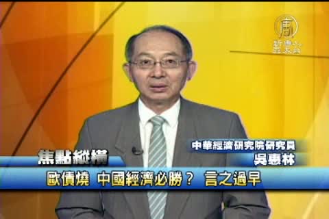 【新唐人亞太台2011年7月12日訊】正當歐債危機燒向義大利,衝擊歐元之際,中共領導人似乎比以往任何時候,都更加自信地認為﹐他們的威權政治和干預主義經濟政策是優越的。其實這並不令人意外﹐因為即使是在全球金融危機最嚴重的時候﹐中國的經濟增長率,也都維持在6%以上。不過最近中國所出現的一系列問題,不得不令人懷疑,中共經濟的必勝論,是否言之過早?包括:過高的通貨膨脹率,以及民眾對房地產市場狀況的普遍不滿,還有公司治理腐敗問題等等。連一向看好中國經濟的日本學者,大前研一,也提出警訊。今天的焦點縱橫,就來跟您一起探討,在歐債延燒之際,我們應該如何看待北