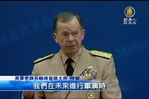 【新唐人亞太台2011年7月12日訊】美軍參謀長聯席會議主席、海軍上將穆倫與中國人民解放軍總參謀長陳炳德,星期一(11號)就南海問題展開會談。陳炳德對美國在南海進行偵察活動的目的提出質疑,認為美國展開聯合軍演的時機不妥。 穆倫則反駁表示,軍演行動符合國際準則,美國將繼續在這一帶進行軍演和偵察行動。