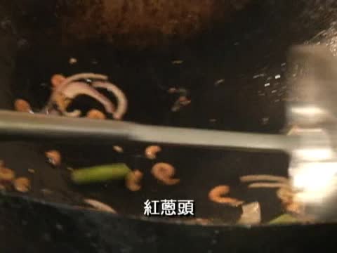 蔥段、紅蔥頭、開陽以及少許的調料,在鍋內不停翻炒,加入一匙高湯後,就把配料撈起,緊接著重要的「南乳」,一起入鍋烹煮,羅師傅說,這就是粵菜「南乳扣肉」的美味秘訣。