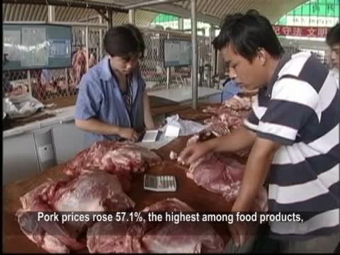中共統計局公布的最新資料顯示,6月中國居民消費價格指數CPI同比上漲6.4%,在食品類的肉禽及製品中,以豬肉價格上漲最多,豬肉價格上漲57.1%,佔CPI漲幅的21.4%。