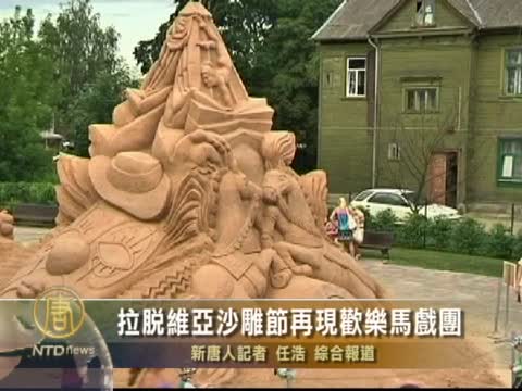 【新唐人2011年7月14日訊】正在拉脫維亞的葉爾加瓦(JELGAVA)舉行的第五屆國際沙雕節,來自8個國家的沙雕藝術家,以馬戲團為背景,精心打造了一尊尊魔力作品。