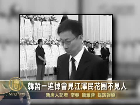 【新唐人2011年7月14日訊】7月13號前上海副市長韓哲一舉行追悼會,上海《東方新聞》及幾家港媒,報導時特別提及江澤民夫妻致送花圈,然而江依然沒有露面,江澤民始終千呼萬喚不出來,更添外界對其生死的揣測。