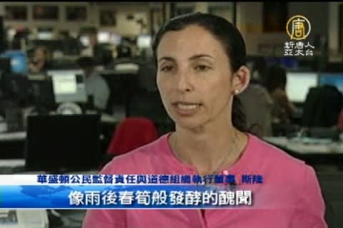 華盛頓公民監督責任與道德組織執行董事 斯隆:「真沒有理由相信,英國正在發生的事情,像雨後春筍般發酵的醜聞,不會在美國發生。」