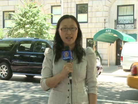 記者:“觀眾朋友我現在就站在世界傳媒大王默多克在紐約的一座房產前,就是在曼哈頓第五大道834號,7月14日紐約的多個人權團體聚集在這幢大樓前,準備將有11萬2千多個簽名的請願信親手交到默多克的手中。”