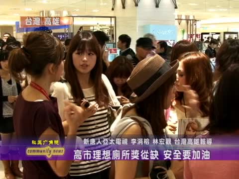 【新唐人2011年7月15日訊】7月8號,高雄市滿天星婦女團體,為14家百貨公司和賣場的衛生間打分數,共列出24項待改善建議,而且原本準備頒發的「脫以雷特獎」,也因為都沒有達到標準而空缺。