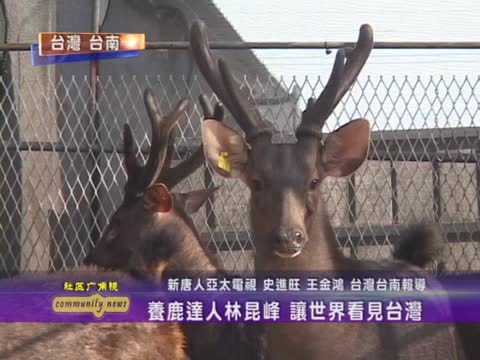 台灣養鹿產業發展已有30多年,如今,六年級的林昆鋒,用台灣精神將台灣鹿行銷國內外,這位臺南鄉下囝仔(臺語發音),正在用最純樸的態度,讓世界看見台灣。