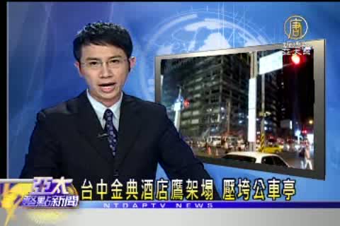 台中金典酒店鷹架塌 壓垮公車亭