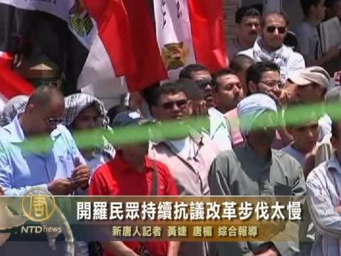【新唐人2011年7月16日訊】星期五(7月15日),埃及上千民眾持續聚集在開羅解放廣場(Tahrir square),長達一週的要求徹底改革的抗議活動,儘管獲得政府的一些讓步,但抗議者認為改革的步伐仍舊太慢。