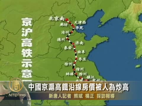 【新唐人2011年7月16日訊】中國京滬高鐵開通後,除了發生故障延誤、車站漏水、電梯故障等狀況不斷外,高鐵沿線掀起的“造城運動”也成為熱門話題,大陸學者指出,目前很多沿線城市不具備資源稟賦和區位優勢,房價大漲是商人的抄作。