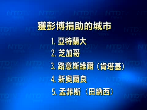 【新唐人2011年7月16日訊】彭博向美國的五個城市提供巨額捐助。請看一則紐約簡訊。