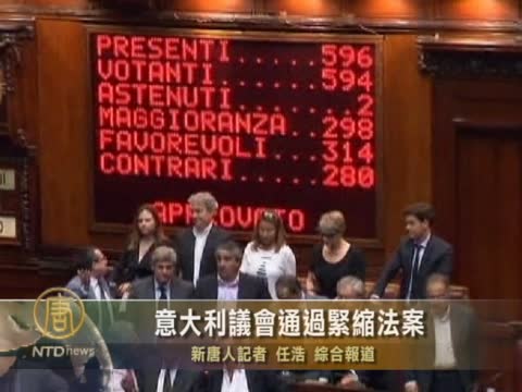 【新唐人2011年7月16日訊】7月15號(星期五),意大利下議院以314票對280票,通過了緊縮法案。在之前一天,意大利參議院已經通過了這項3年內縮減480億歐元(約680億美元)的法案。