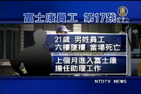 【新唐人亞太台2011年7月19日訊】今天的中國新聞真相報導,首先要帶您來關心,富士康再傳跳樓事件。根據《深圳商報》的報導,位在廣東深圳市寶安區龍華富士康北門百鳴園的宿舍,昨天(18日)凌晨,1名年僅21歲的男員工從6樓墜樓,當場死亡。根據瞭解,這名員工上個月才進入富士康,擔任助理的工作。死者的堂哥蔡先生表示,事發當天,堂弟參加朋友的生日聚會,喝了點酒,精神狀態不錯,誰知道卻突然接到堂弟的死訊;家屬表示,死者平常非常開朗,跳樓消息令人無法接受。到目前為止,富士康尚未對此事提出解釋,當地公安也不願意發表意見。這是富士康第17起墜樓意外,上一起跳