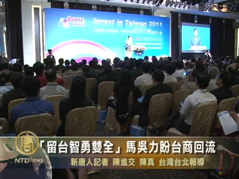 【新唐人2011年7月19日訊】總統馬英九19號出席「亞洲臺商投資台灣」的說明會,向13個國家和地區的臺商致詞,說明施政成績,行政院長吳敦義也呼應說,留在台灣,智勇雙全。兩人在爭取臺商回流之際,大選經濟牌的態勢似乎也逐漸浮現。