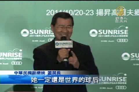 中華民國副總統 蕭萬長:「曾雅妮為台灣爭取很多榮耀,也因為這樣我相信到10月間,LPGA台灣錦標賽召開的時候,她一定還是世界的球后」
