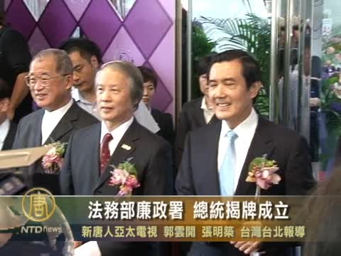 【新唐人2011年7月21日訊】去年7月20日,馬英九總統宣佈將設置法務部廉政署,推動廉政革新,歷經一年準備,今天(20日),廉政署正式揭牌運作。馬總統強調,肅貪不如防貪重要。期許廉政署的成立,能有效降低貪污犯罪率。