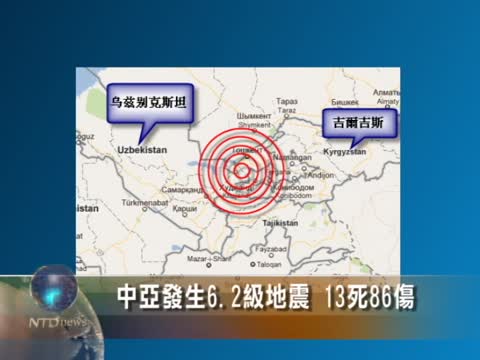 【新唐人2011年7月21日訊】烏茲別克斯坦緊急情況部門7月20號發表聲明,指出在當日凌晨1時35分(美東時間19日下午3時35分),在該國與鄰國吉爾吉斯邊界地帶發生了裡氏規模6.2地震,在烏茲別克斯坦境內造成至少13人死亡,86人受傷。其中35人需送醫治療。