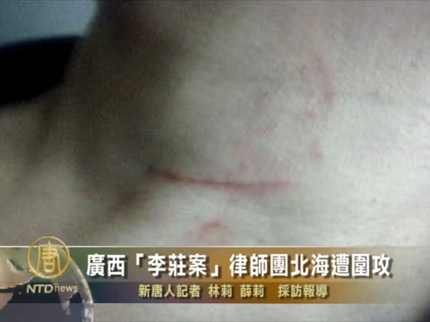 【新唐人2011年7月21日訊】“廣西四律師偽證案”的代理律師團,週一晚上在北海投宿的酒店內兩度遭數十身份不明者圍攻,導致兩名律師送醫急救;“北海律師團”在北海遭圍攻,目前已引發社會極大關注,認為是中國法制的悲哀。