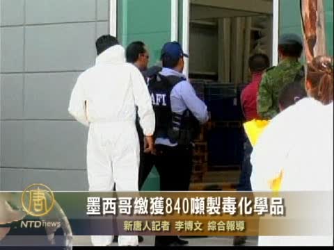 【新唐人2011年7月22日訊】墨西哥軍方繳獲了840噸用來製造毒品的化學原料,這是該國迄今為止繳獲的最大數量的製毒化學品。