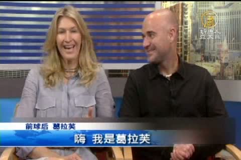 【新唐人亞太台2011年7月22日訊】今年一月來台打表演賽的前球王阿格西,實現了他和台灣球迷的約定,阿格西決定明年五月與太太葛拉芙,一起來台打表演賽,阿格西與葛拉芙也先透過影片問候台灣球迷,希望能在台灣掀起另一波網球熱潮。
