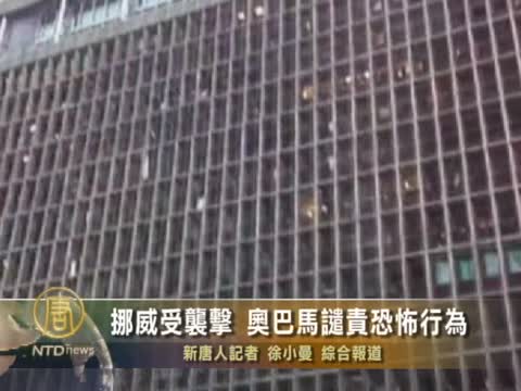 【新唐人2011年7月23日訊】7月22號, 挪威遭受到一系列的襲擊事件,上午先是首都奧斯陸市發生爆炸。當地時間下午3點左右,有男子假扮警察,潛入青少年夏令營,開槍掃射。對此,美國總統奧巴馬和國際社會表示強烈譴責。根據挪威警方最新公布數據,在奧斯陸爆炸案中目前死亡人數已經上升到7人,而小島槍擊事件死亡人數為20人,但警方擔心人數恐持續上升。