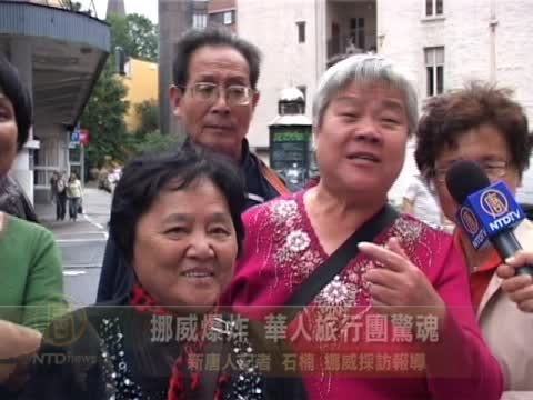 【新唐人2011年7月23日訊】7月22號(星期五), 挪威首都奧斯陸市發生爆炸。大陸溫州旅行團的遊客當時就在附近觀光,這些人有驚無險的跟這場災難擦肩而過,感到萬分幸運。請看來自挪威的報導。