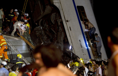 【新唐人2011年7月24日訊】23日晚23日晚8點半左右,在浙江溫州雙嶼客運站附近,發生一起列車追尾造成脫軌墜橋的重大事故。據報導,截至24日早晨7點15分,遇難人數已升至41人,傷者超過200人。