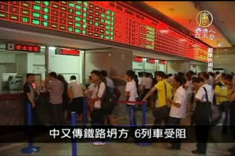 中國又傳鐵路坍方。北京鐵路局京承鐵路今天(25日)下午在密雲縣境內發生坍方,造成6列火車運行中斷。