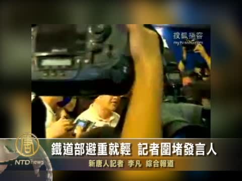 【新唐人2011年7月26日訊】溫州「723」動車重大追尾事故發生26小時之後,7月24號,鐵道部終於在溫州舉行記者會。在後來記者眾多提問尚未得到解答,發言人王勇平匆忙逃離,被到場的兩三百位記者圍堵,狼狽逃竄。