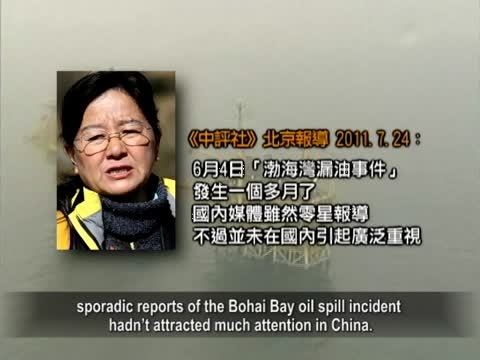 這個月24號《中評社》北京報導,環保人士汪永晨指出,自6月4號「渤海灣漏油事件」發生一個多月了,國內媒體雖然零星報導,不過並未在國內引起廣泛重視;對照去年(2010年) 4月在美國發生的「墨西哥灣漏油事件」,兩國政府在面對同樣的環境污染災害時,明顯不同的處理態度。