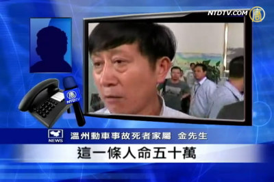 【新唐人2011年7月28日訊】中國溫州動車慘案進入第6天,當局急以50萬元賠償了事,並有所謂的“獎勵費”,鼓勵遇難家屬早日達成賠償協定,使家屬十分不滿。有律師表示,沒有調查原因就賠償是以錢息事寧人。律師們普遍認為賠償金額太低。