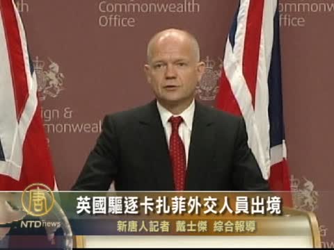 7月27日(星期三),英國外交大臣黑格(William Hague)正式宣佈,驅逐利比亞駐倫敦大使館的外交人員出境,並承認反抗軍全國過渡委員會是利比亞唯一合法政權。黑格同時表示英國將邀請反抗軍,全國過渡委員會指派新的大使,接掌現有的大使館,並開始採取行動凍結卡扎菲的資產。