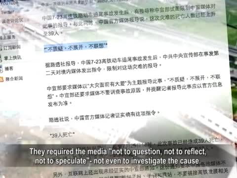 據路透社報導,在動車追尾事故發生後第二天,中宣部下達指示,要求媒體以「大災面前有大愛」為主題報導此事。並要求媒體「不質疑,不展開,不聯想」。不要調查事故原因。鐵道部發言人王勇平說,這起事故是由於雷擊造成設備故障導致的。輿論批評當局把老百姓當傻子。
