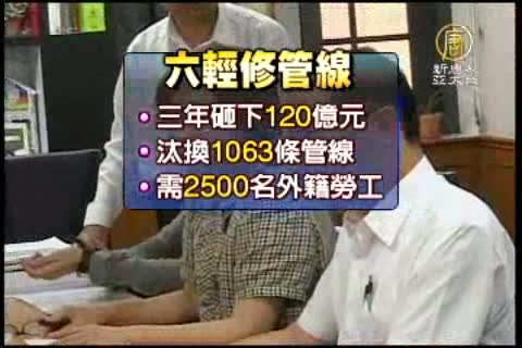 【新唐人亞太台2011年7月28日訊】來看到六輕工安事故。一年內六把火,燒得人心惶惶,昨天(27日)台塑集團副董事長王瑞華親自南下麥寮,承諾三年內將砸下120億元,全面汰換六輕的老舊管線,並且打算向勞委會申請2500名外勞來協助,不過此舉卻引起勞團批評,認為台塑應優先聘僱本國勞工。