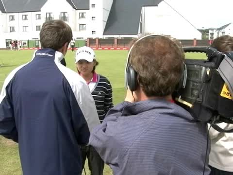 【新唐人2011年7月29日訊】英國高球公開賽在台灣時間今天(28日)晚上開打,去年勇奪冠軍的世界球後曾雅妮,把握最後時間積極練球,各國媒體也爭相邀約採訪,讓曾雅妮成為現場最受歡迎的球員,對於未來四天的比賽,曾雅妮信心十足,她也透過民視的專訪,感謝台灣球迷的支持。