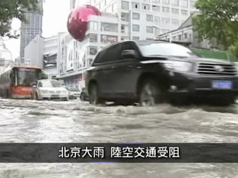 向來乾燥的北京進入雨季,近來連日大雨。繼日前在郊區密雲縣造成土石流後,今早的大雨又造成交通嚴重堵塞,更有近140個班機被取消或誤點達1 小時,嚴重影響民眾出行。