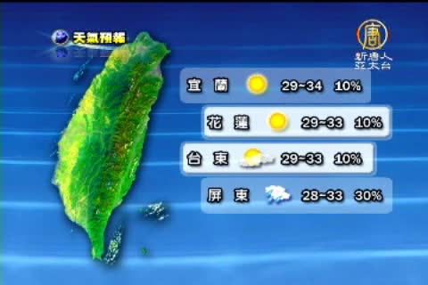 【新唐人亞太台2011年7月31日訊】以下帶您關心8月1號星期一,全台各地以及世界各主要城市的天氣預報。