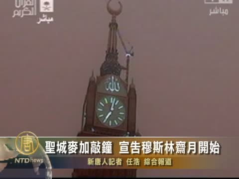【新唐人2011年8月1日訊】沙特阿拉伯的聖城麥加(Mecca),7月31號(星期天)響起了鐘聲。這裡的一座據說是世界上最大的鐘樓,敲響了穆斯林的齋月。