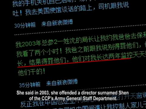 邵小珊在微薄中公開表示,「這件事瞞了多年,現在豁出去了! 」因為她在2003年時,得罪了總參2部一名姓瀋的局長,於是他們對邵小珊「長達兩年監控」天天整她!」