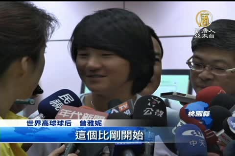 【新唐人亞太台2011年8月3日訊】新聞頭條,帶您看到,世界球后曾雅妮,頂著英國高球公開賽冠軍,以及個人第五座大滿貫金盃的光環,今天(2號)一早回到台灣,儘管一身疲憊,曾雅妮還是堆滿笑容,一下飛機就獲得熱情球迷的歡迎,就連高齡92歲的阿嬤也現身接機,讓曾雅妮好驚喜。