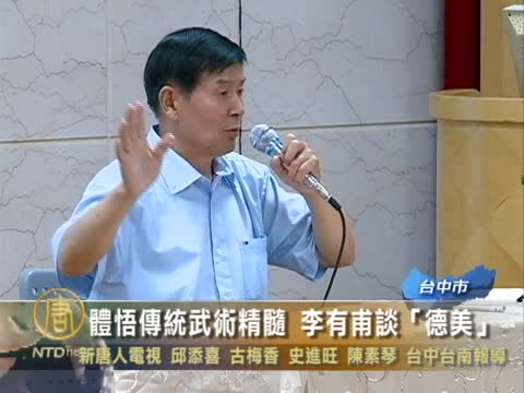 2019-06-10 20:56:55美國知名中醫博士,同時為知名武術家的李有甫,這次為擔任新唐人舉辦的,全世界華人武術大賽亞太區初賽評委主席來台,並舉辦四場「武術與中醫養生」為題的講座,第一站台北出發,約有110位聽眾,現場互動討論熱烈。
