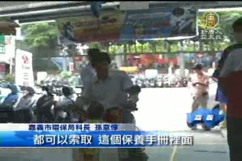 【新唐人亞太台2011年8月3日訊】為了降低機車所排放的廢氣,維護空氣品質,嘉義市政府環保局為嘉義市的機車車主,準備了專屬機車的保養手冊,希望來時時提醒車主,該為愛車進行保養了。