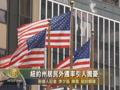 【新唐人2011年8月4日訊】帝國州政策中心(Empire Center for State Policy) 最新報告顯示,在過去的50年內,美國國內從紐約州搬走的居民比從外州遷入的居民多730萬,這主要是由紐約州過高的生活費用和高稅收造成的。紐約居民紛紛對高外遷率的原因發表看法。請看報導。