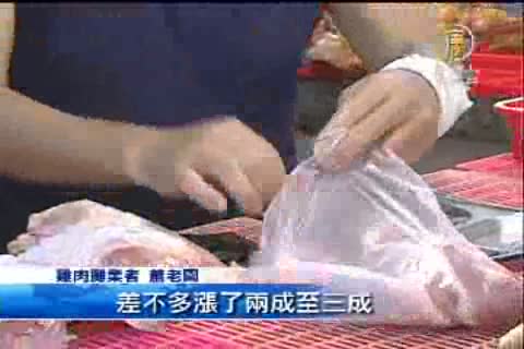 「差不多漲了兩成至三成,現在(土雞)一斤差不多一百塊(錢)左右,本來是差不多七、八十塊(錢)左右,所以漲了差不多三成,今年特別貴。」