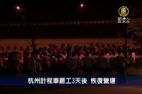 【新唐人亞太台2011年8月4日訊】中國杭州市的計程車司機,為了抗議高額的營運成本而進行的三天罷工行動後,今天(4號)1500多輛計程車已經基本恢復正常營運,司機們表示,高漲的油費和承包費讓他們這些外出工作者難以生活。