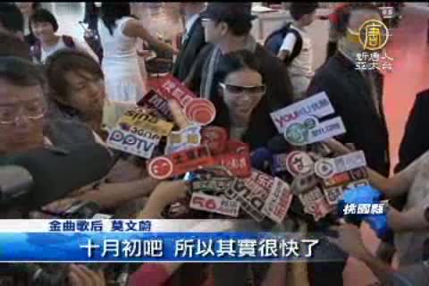 【新唐人亞太台2011年8月4日訊】「金曲天后」莫文蔚帶著得獎的喜悅,今天下午搭機來台,受到粉絲們熱情歡迎,這是時隔六年後,七夕情人節當天將在臺北開唱,莫文蔚說台灣是她的「福地」,她會使出渾身解數,為台灣粉絲們「加菜」 。
