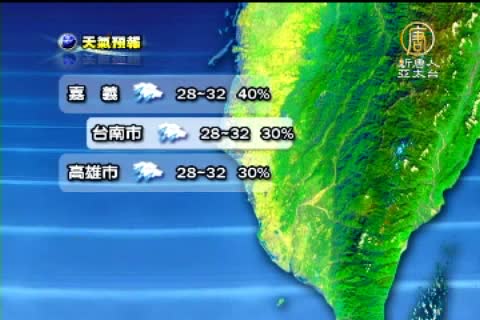 【新唐人亞太台2011年8月4日訊】中央氣象局已經在下午5點半發布中度颱風梅花的海上颱風警報。預估明天通過琉球南部海面後,行進方向會由目前的西北西方向漸轉為西北方向, 7日逐漸遠離台灣,氣象局研判,梅花的暴風圈應會掃過台灣北部近海,侵襲台灣陸地的機率不高,但外圍環流及後續引進的西南氣流仍可望帶來可觀雨量,明天中午過後,北部、東北部就會明顯降雨。以下帶您關心8月5號星期五,全台各地以及世界各主要城市的天氣預報。