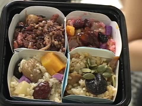 仔細看營養師的健康油飯,除了必備的香菇、瘦肉,還加入南瓜子,燕麥、南瓜、紫山藥,用來增加纖維,至於粉紅色的八寶飯,則有抗氧化的甜菜根,但最重要的是選用黑麻油、茶油來取代豬油,另外飯,不用炒的,而是用拌的。