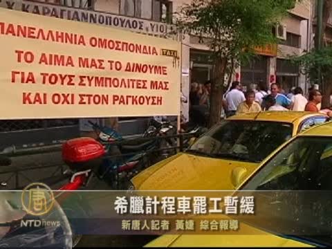 【新唐人2011年8月6日訊】希臘計程車司機於星期五(8月5日)宣佈,對於不利計程車業改革措施的抗爭罷工行動暫停一個月。